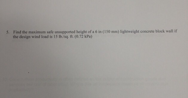 While the term is not found in codes or standards, it is common industry language to describe the process of constructing walls in shorter segments, without the requirements for cleanout openings, special concrete block shapes or equipment. Without support, you can stack the blocks on top of each other up to around 4 feet, but there are other concerns above and beyond simple height that can affect the stability of the wall. Because of the small core size and resulting difficulty in consolidating grout, these units are rarely grouted. (127 mm) thick units placed with type n portland cement mortar in an area that encounters 40 psf (1.915 kpa) wind pressure, the maximum height span of the screen wall is 6 ft 8 in. Another example, when building a vertically spanning screen block wall with nominal 5 in. Tables 1 through 8 list concrete masonry wall weights for 4 to 16 inch (102 to 406 mm) thick single wythe walls. Ansi a41.1, an empirical code first published in 1944 doesn't allow a masonry wall to be higher than 20 times its thickness. Feb 14, 2020 · how high can you build a cinder block wall? The maximum height and slenderness of a masonry wall depends on what code is followed to design it. Maximum height of concrete masonry walls woodman88 (structural) 3 oct 12 11:55 this is from my standard handbook for civil engineers 3th ed. As a general rule, you do not want to build any sort of structure over 4 feet in height without including some type of structural support within. The wall is built to scaffold height or to a bond beam course, to a maximum of 5 ft (1,520 mm). Finish grade shall be of equal elevation on each side of the wall.